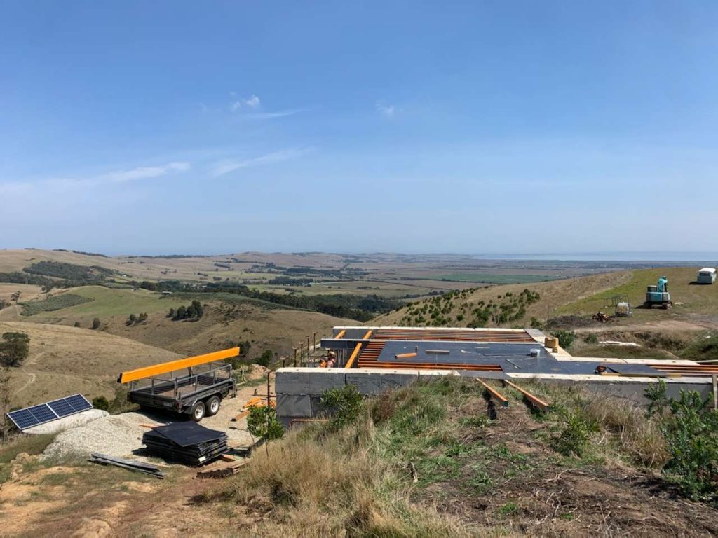 Set on the hilltops overlooking the coast and back to Phillip Island the team have been enjoying the breathtaking views. With a 1.5km driveway this project was always going to be a challenge.